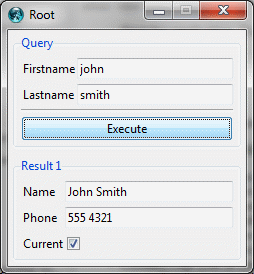 Enter "john" into the Firstname field, "smith" into the Lastname field then press Execute...