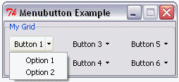 gridplus menubutton .mygrid -title "My Grid" -width 6 -wtitle "Menubutton Example" {